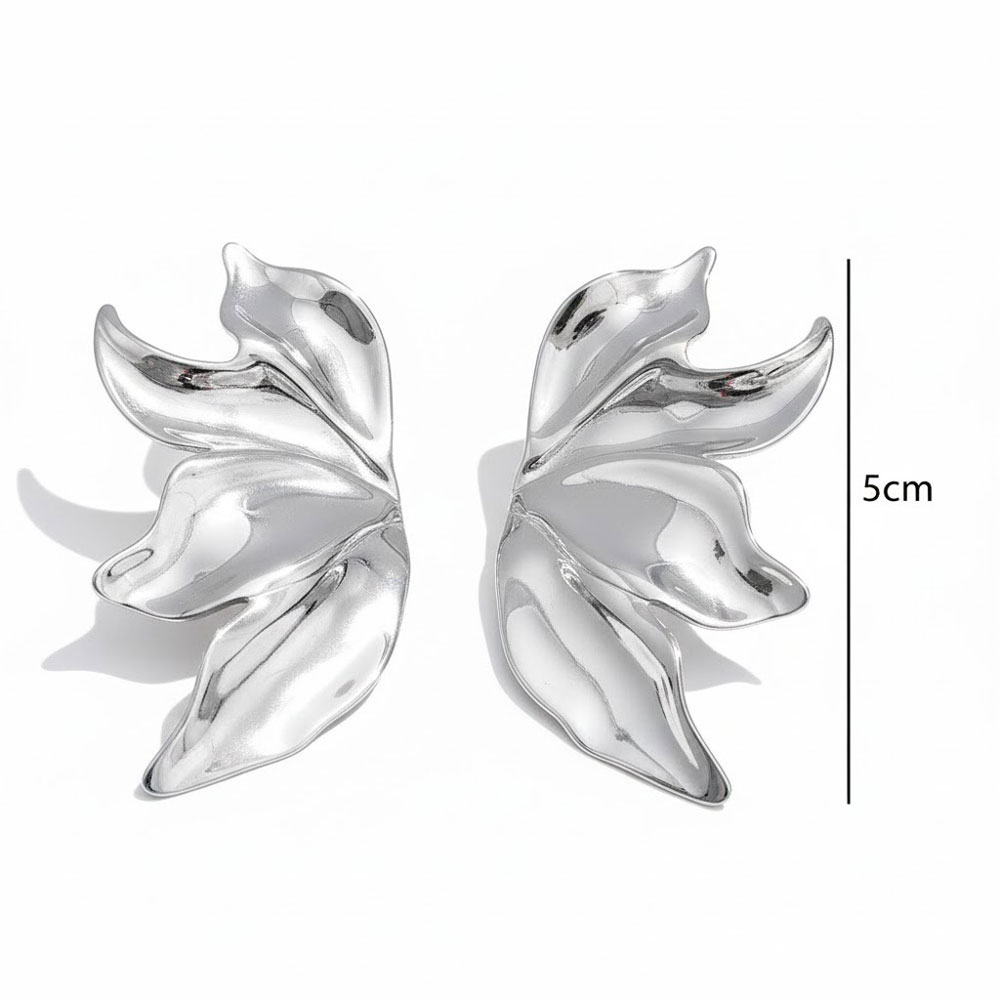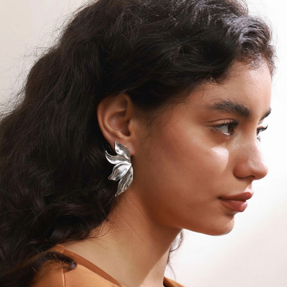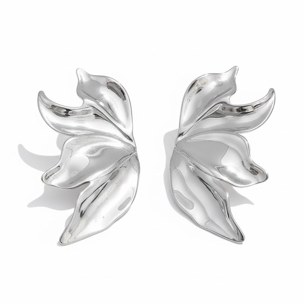 Εντυπωσιακά σκουλαρίκια σε σχέδιο φύλλου από ατσάλι, με ανάγλυτη οργανική μορφή που προσφέρει μοντέρνα και κομψή αισθητική. Η ιδιαίτερη καμπυλωτή τους γραμμή δημιουργεί ένα statement αποτέλεσμα, ιδανικό για όσες αναζητούν ένα ξεχωριστό και εκλεπτυσμένο κόσμημα.Ανθεκτικά και άνετα στη χρήση, αναβαθμίζουν κάθε εμφάνιση με μια σύγχρονη και καλλιτεχνική πινελιά.