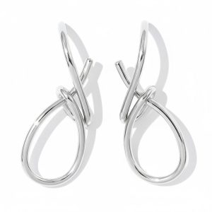 Μοντέρνα κρεμαστά σκουλαρίκια από ατσάλι, με εντυπωσιακό σχέδιο κόμπου που δημιουργείται από καμπύλες γραμμές και minimal αισθητική. Ελαφριά και άνετα, προσθέτουν ιδιαίτερο στυλ σε κάθε εμφάνιση, καθημερινή ή πιο επίσημη. Ιδανική επιλογή για όσες αγαπούν τα statement αλλά διακριτικά κοσμήματα.