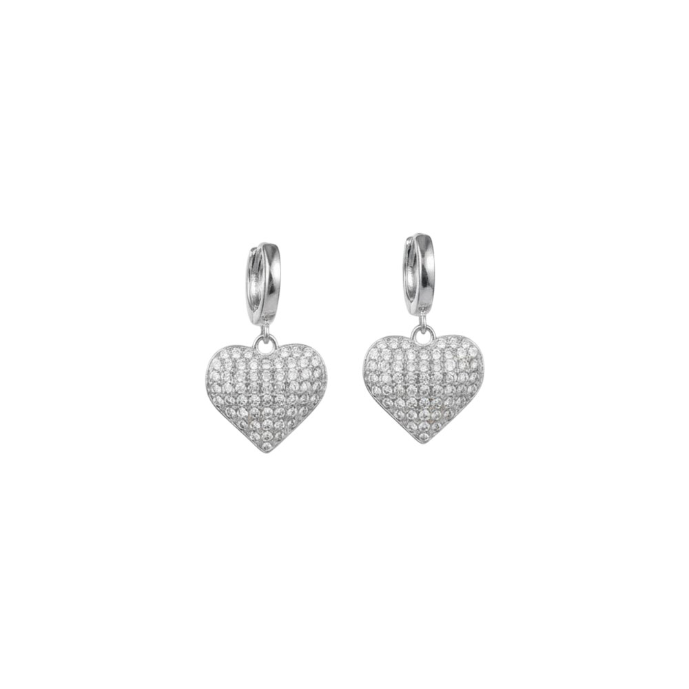 Σκουλαρίκια Ατσάλι Καρδιά με Λαμπερά Στρας Ασημί