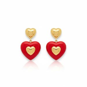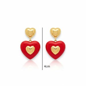 Ατσάλινα Κρεμαστά Σκουλαρίκια Καρδιές Χρώμα Χρυσό με Κόκκινο