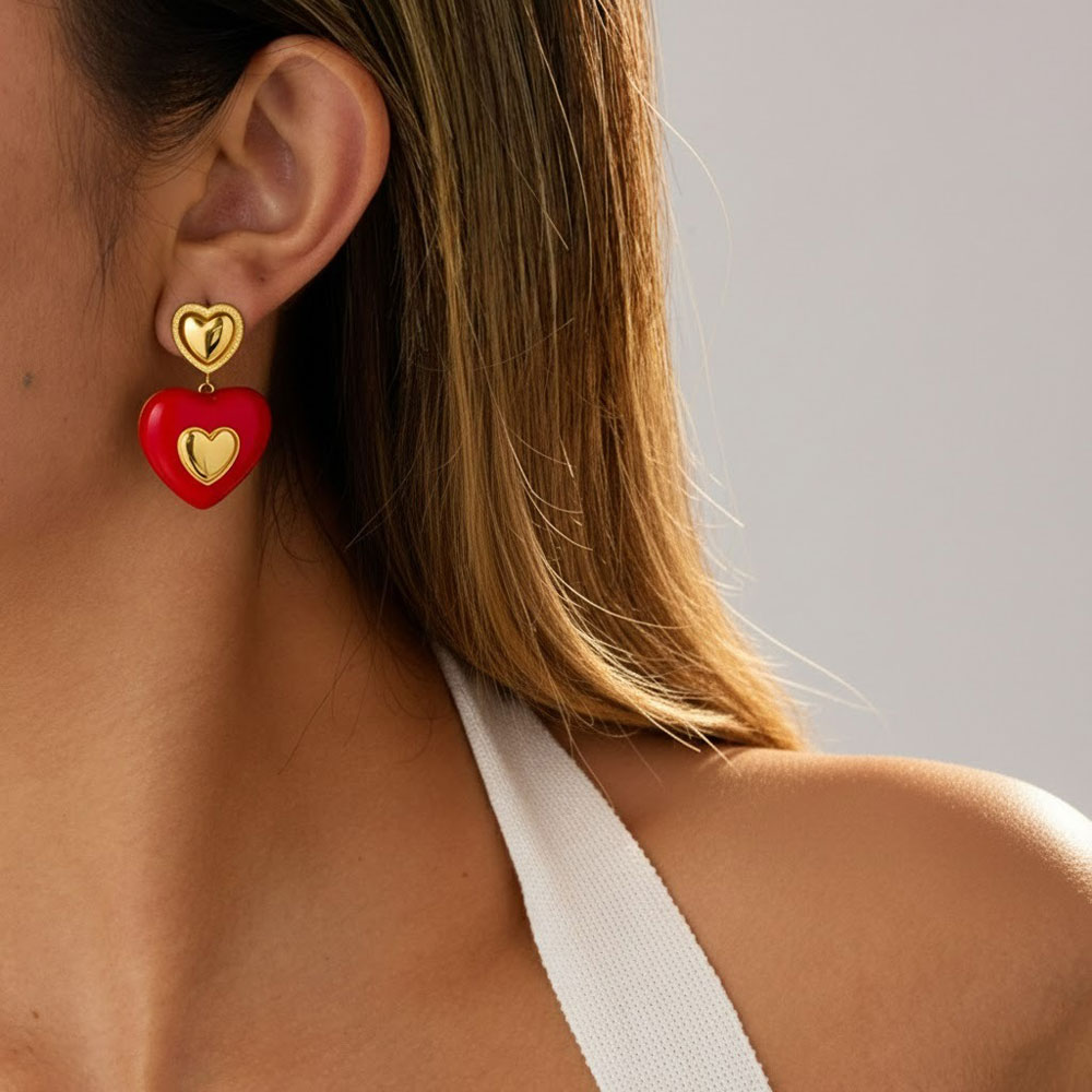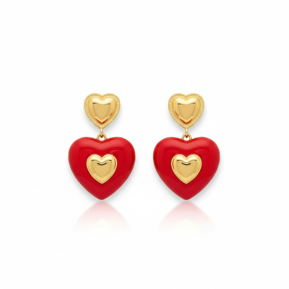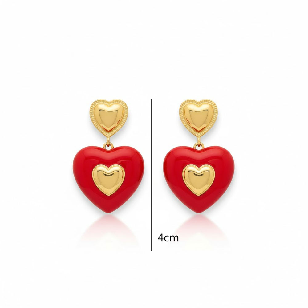 • Ατσάλινα Κρεμαστά Σκουλαρίκια Καρδιές Χρώμα Χρυσό με ΚόκκινοA3334-1A