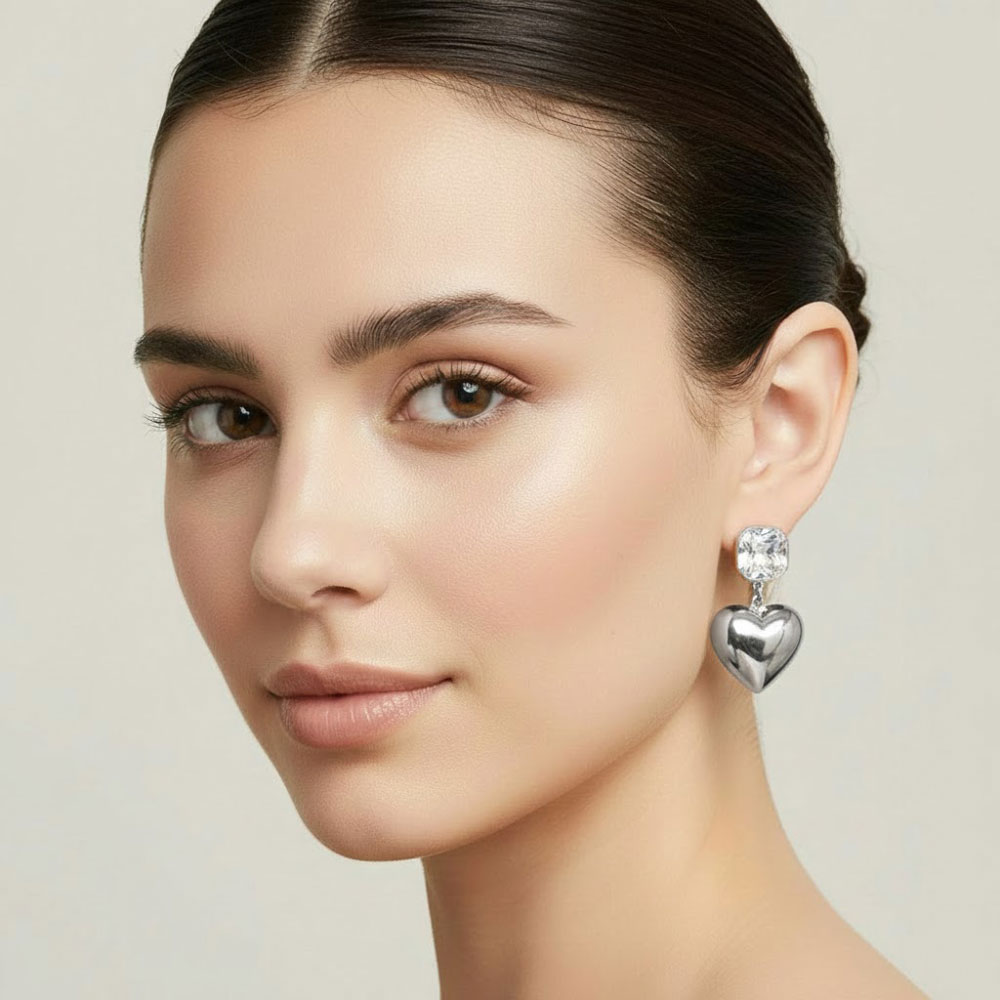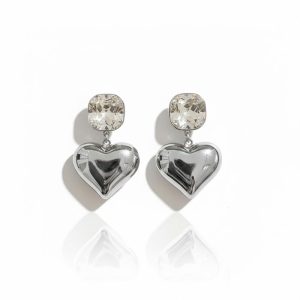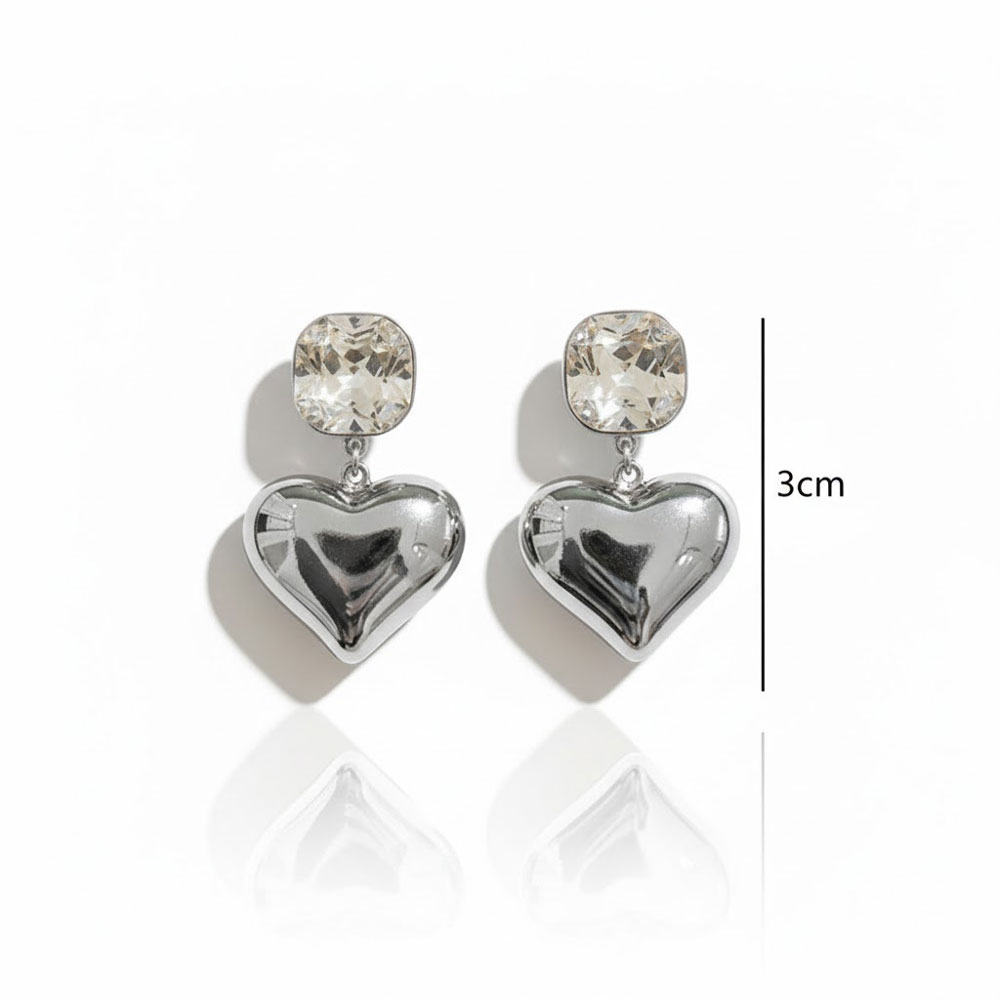 Σκουλαρίκια Καρδιά Στρας από Ατσάλι Ασημί