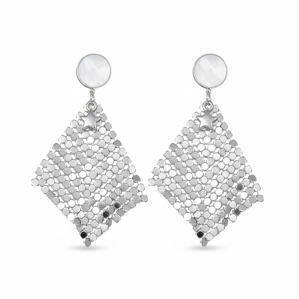 • Σκουλαρίκια Ατσάλινα Κρεμαστά με Φιλντισένιο Στοιχείο και Αστέρι Ασημί ΧρώμαX00536B