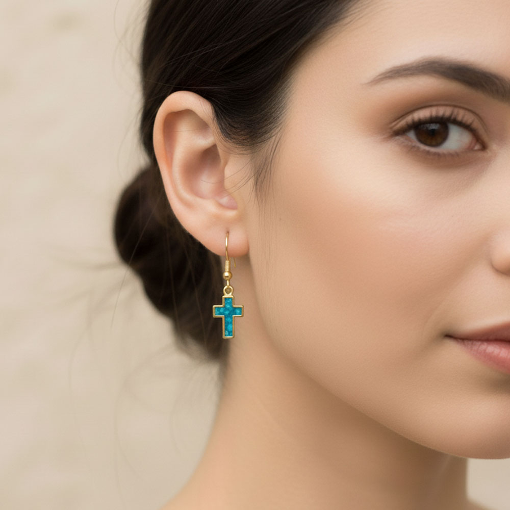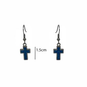 Κρεμαστά σκουλαρίκια από ανοξείδωτο ατσάλι με σταυρό διακοσμημένο με μπλε συνθετική πέτρα που προσφέρει όμορφη, φωτεινή λάμψη. Ελαφριά και άνετα στην εφαρμογή, ιδανικά για καθημερινές εμφανίσεις αλλά και πιο ιδιαίτερες περιστάσεις. Φοριούνται εύκολα μόνα τους ή συνδυασμένα με άλλα κοσμήματα για ολοκληρωμένο look.