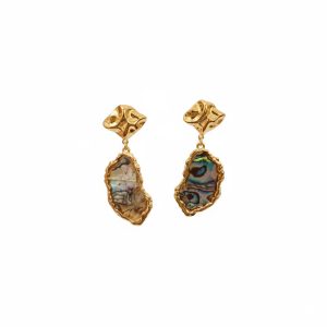 Κρεμαστά σκουλαρίκια από ατσάλι με φυσικό κοχύλι σε οργανικό σχήμα. Το κοχύλι, με τις ιριδίζουσες αποχρώσεις του, πλαισιώνεται από χρυσό μεταλλικό περίγραμμα, δημιουργώντας ένα εκλεπτυσμένο και ιδιαίτερο αποτέλεσμα.Με μήκος περίπου 5,5 cm, προσφέρουν μια αίσθηση φυσικής πολυτέλειας και αποτελούν ιδανική επιλογή για εμφανίσεις που χρειάζονται ένα ξεχωριστό, καλλιτεχνικό στοιχείο. Ένα κόσμημα που τραβά διακριτικά την προσοχή και ολοκληρώνει το look με κομψότητα.