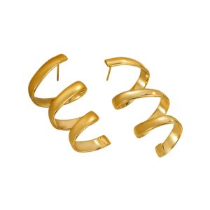 Εντυπωσιακά σκουλαρίκια σε σπειροειδή γραμμή που αγκαλιάζουν το αυτί και χαρίζουν δυναμικό, μοντέρνο χαρακτήρα σε κάθε εμφάνιση. Κατασκευασμένα από ανοξείδωτο ατσάλι, συνδυάζουν ανθεκτικότητα με άνετη εφαρμογή και αποτελούν ιδανική επιλογή για καθημερινό αλλά και πιο statement styling.