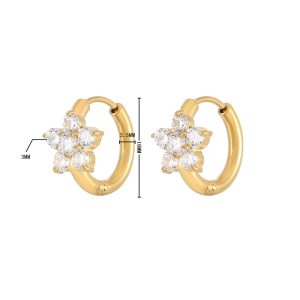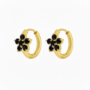 Σκουλαρίκια Κρίκοι Ατσάλι Χρυσό Με Μαύρες Πέτρες Λουλούδι