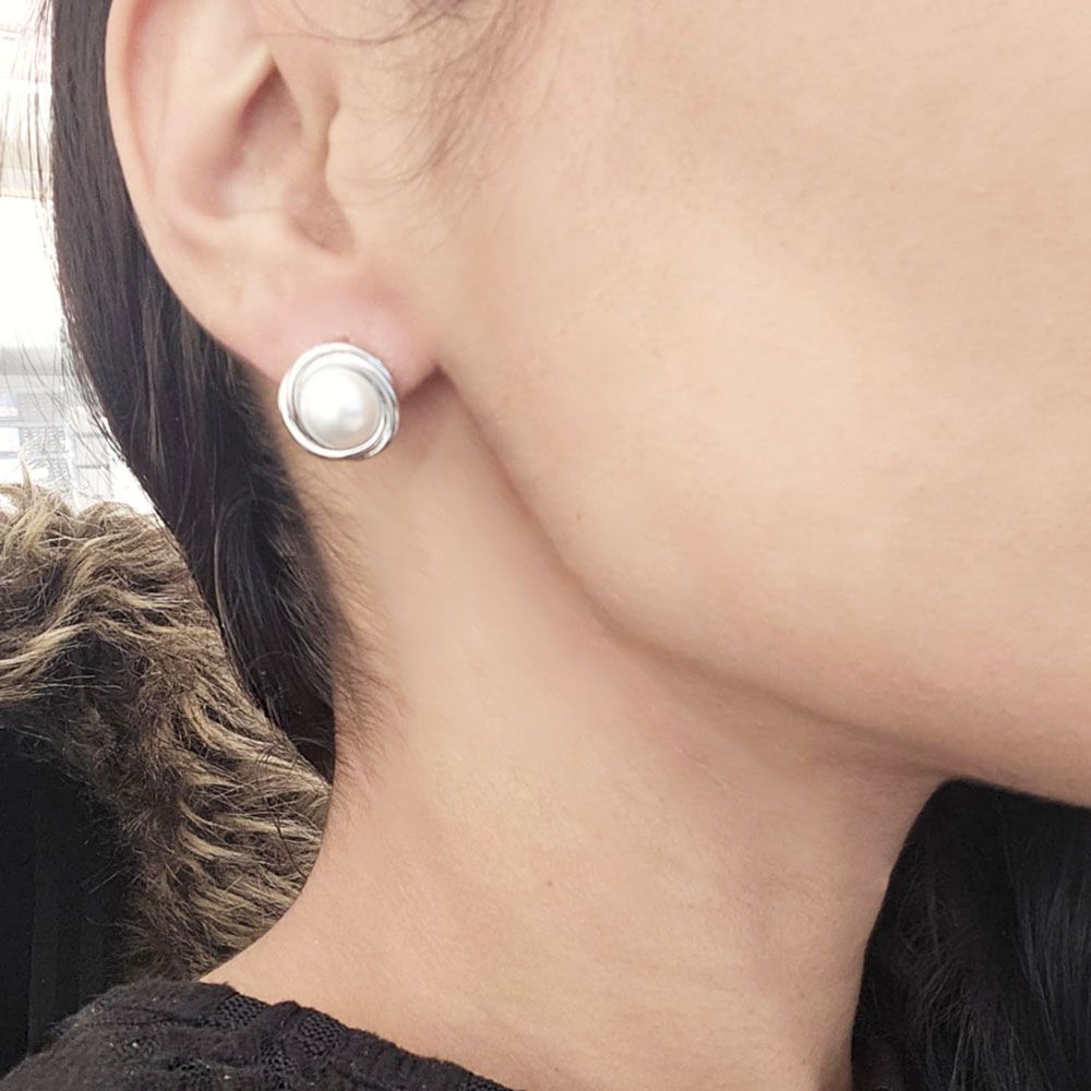 Ατσάλινα Σκουλαρίκια Καρφωτά Με Πέρλα – Ασημί