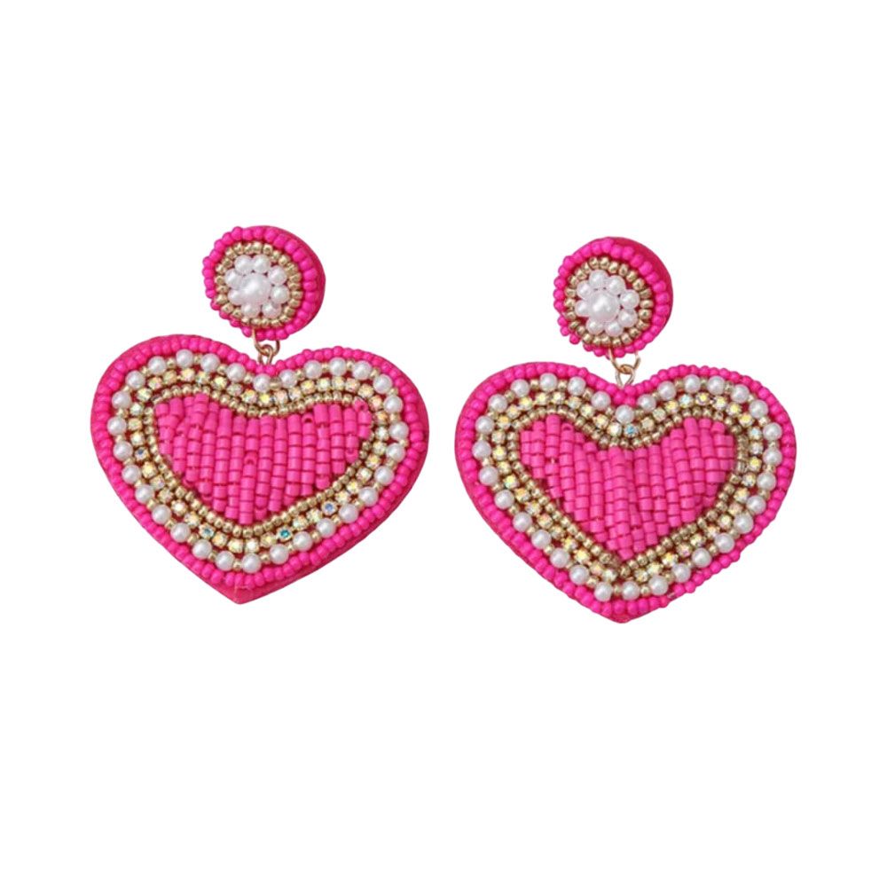 Σκουλαρίκια Καρφωτά Σε Σχήμα Καρδιάς Με Χάνδρες – Ροζ