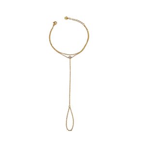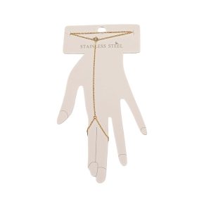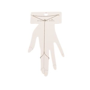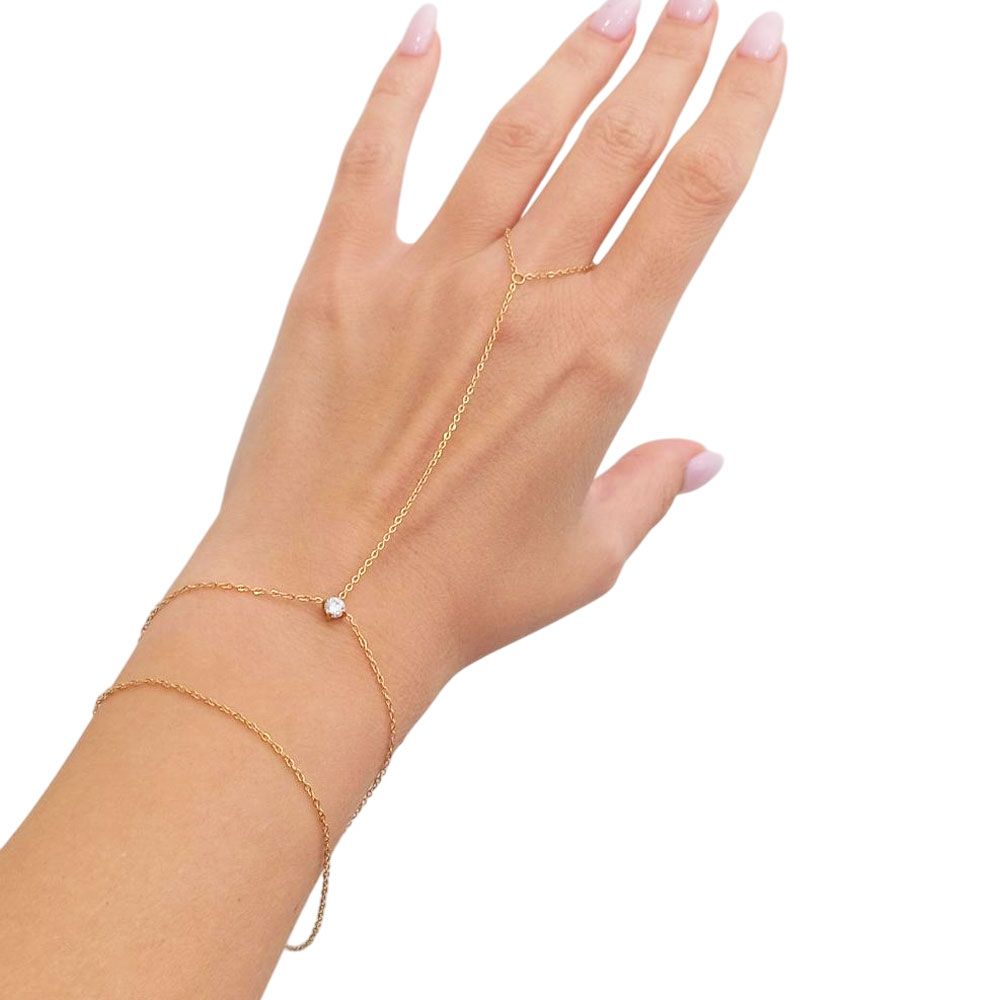 Ένα διακριτικό και κομψό βραχιόλι δαχτυλίδι από ανοξείδωτο ατσάλι, διακοσμημένο με έναν λαμπερό κρύσταλλο στο κέντρο. Ο minimal σχεδιασμός του χαρίζει μοντέρνα και εκλεπτυσμένη εμφάνιση, ενώ η ελαφριά αλυσίδα αγκαλιάζει αρμονικά το χέρι και το δάχτυλο. Ιδανικό για να φορεθεί καθημερινά ή να ολοκληρώσει μία βραδινή εμφάνιση με διακριτική λάμψη.
