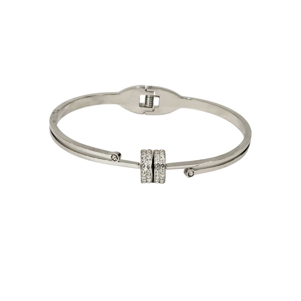 Χειροπέδα Λεπτή Απο Ανοξείδωτο Ατσάλι Με Πέτρες Ζιργκόν - ΑσημίA2241A