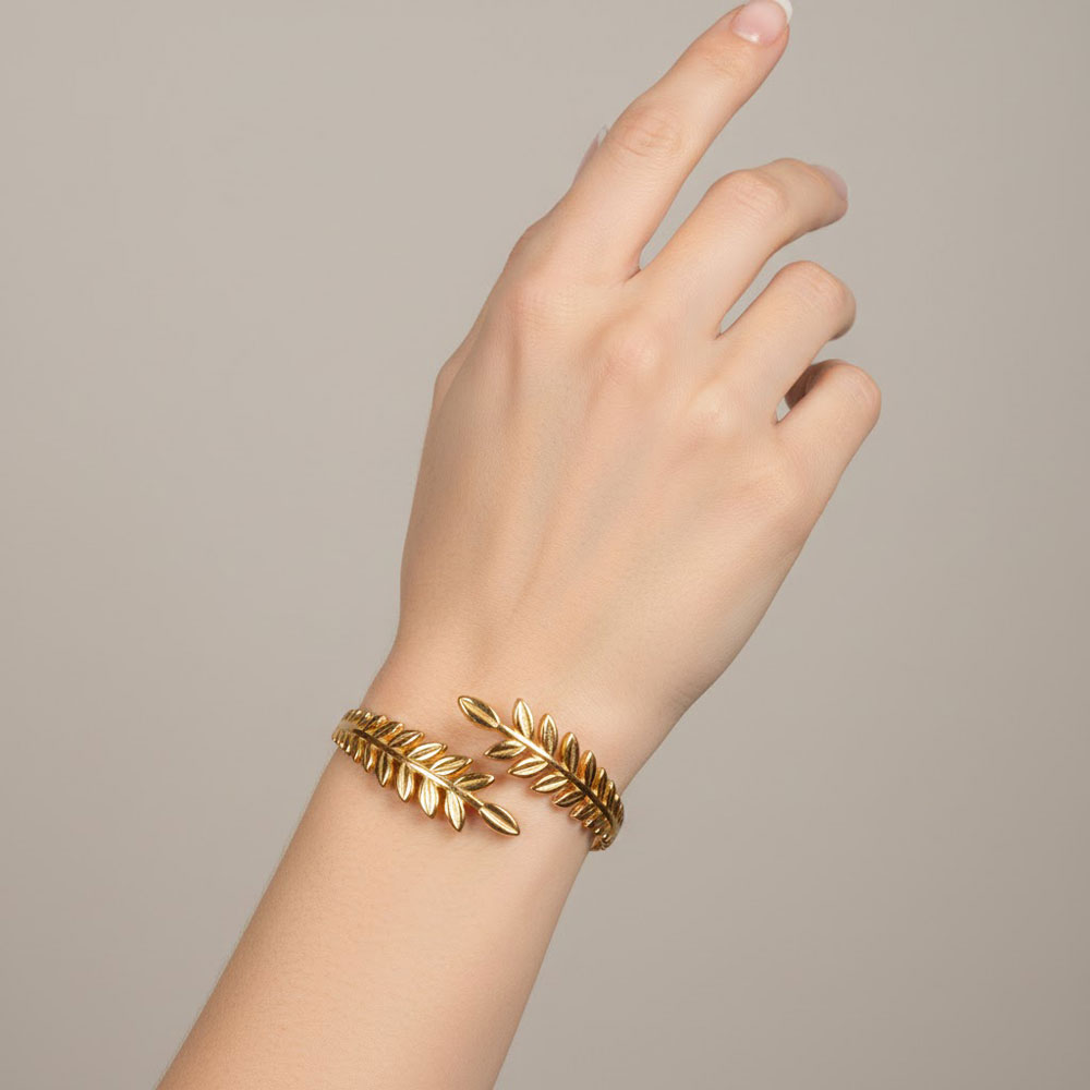 Κομψό βραχιόλι από ανοξείδωτο ατσάλι με σχέδιο φύλλων ελιάς, που αγκαλιάζει αρμονικά τον καρπό και προσφέρει φυσική, διακριτική κομψότητα. Ένα elegant και διαχρονικό αξεσουάρ, ιδανικό για καθημερινές αλλά και πιο ιδιαίτερες εμφανίσεις.