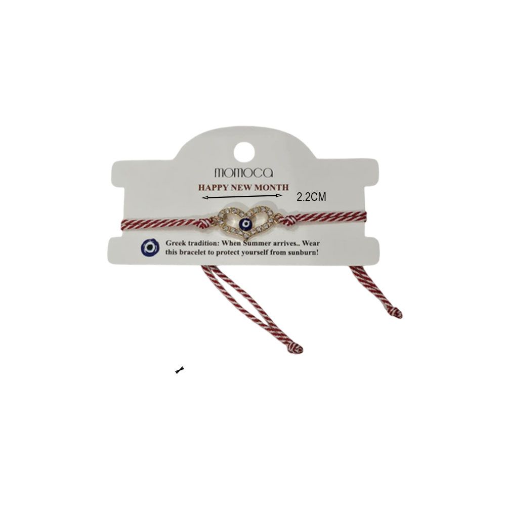 Γυναικείο βραχιόλι μαρτάκι, Με Καρδιά Και Γυαλιστερές Πέτρες Πλάτος Καρδιάς 2.2CM