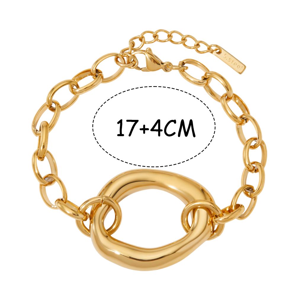 Δώστε δυναμικό χαρακτήρα στο στυλ σας με αυτό το ατσάλινο chunky chain βραχιόλι με εντυπωσιακό κεντρικό κρίκο. Διαθέσιμο σε τρία χρώματα – χρυσό, ασημί και διχρωμία χρυσό/ασημί – αποτελεί το απόλυτο trend της σεζόν. Φοριέται μόνο του ως statement κομμάτι ή σε συνδυασμό με το αντίστοιχο κολιέ για ολοκληρωμένο look. Ιδανικό για urban chic εμφανίσεις που ξεχωρίζουν.Μήκος: 17 + 4 cm (ρυθμιζόμενο).