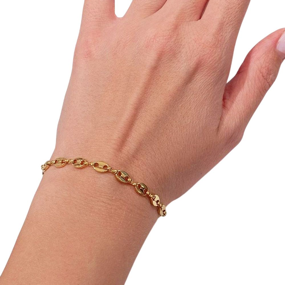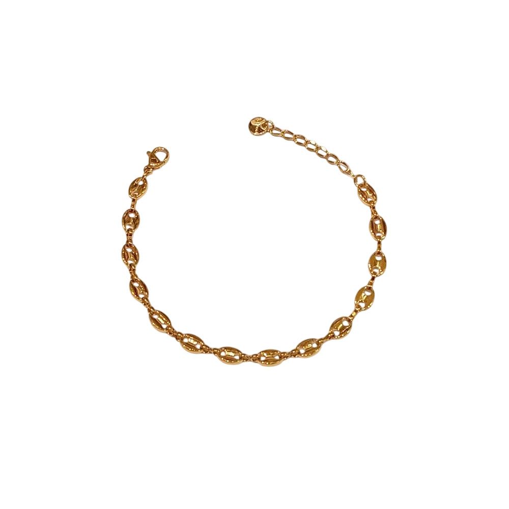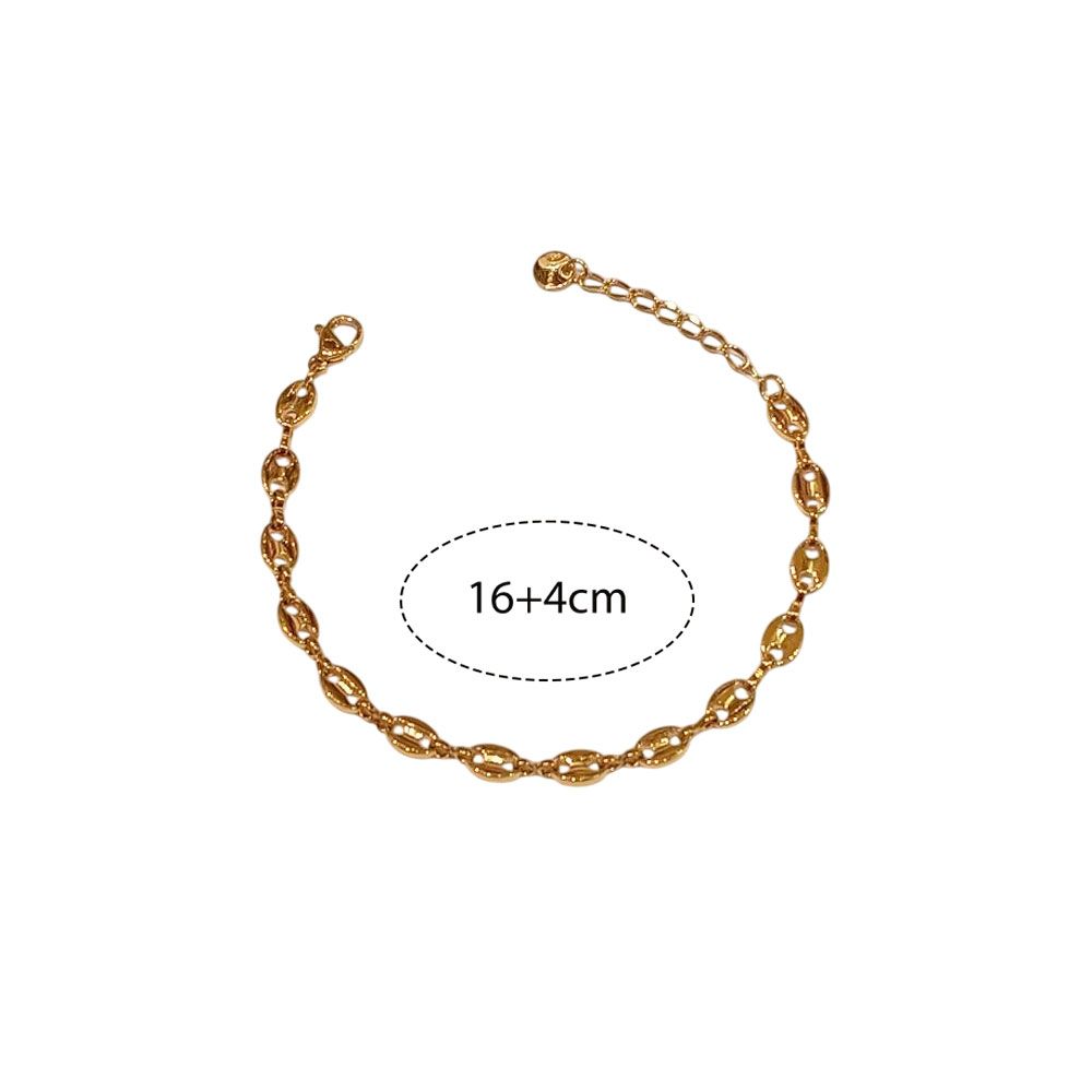 Ατσάλινο βραχιόλι με αλυσίδα από οβάλ κρίκους σε χρυσό χρώμα. Ένα minimal αλλά εντυπωσιακό σχέδιο που ταιριάζει σε κάθε στυλ, ιδανικό για καθημερινές και πιο ιδιαίτερες εμφανίσεις. Μήκος αλυσίδας 16+4cm για προσαρμοζόμενη εφαρμογή.