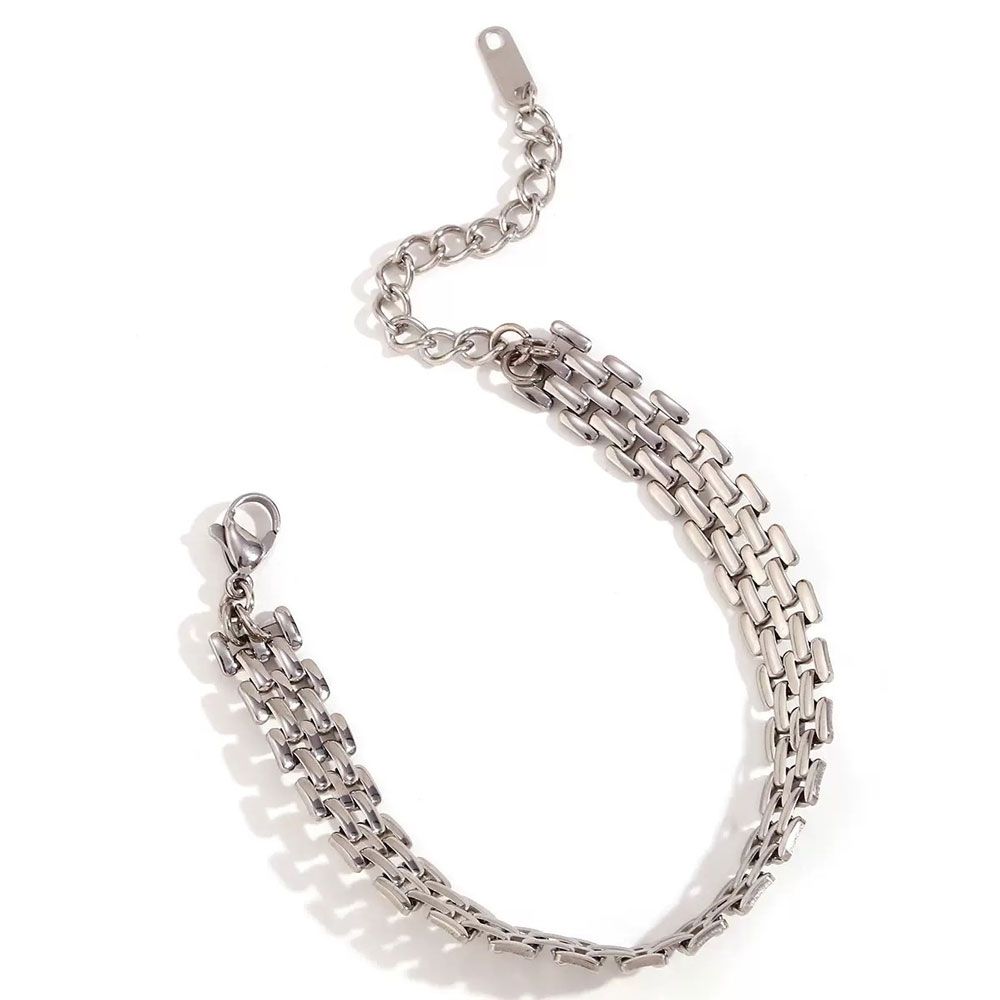 Κομψό και διαχρονικό ατσάλινο βραχιόλι με φαρδύ κρίκο τύπου chain, ιδανικό για να φορεθεί μόνο του ή συνδυασμένο με άλλα. Ανθεκτικό και λαμπερό, προσθέτει μοντέρνα κομψότητα σε κάθε εμφάνιση.Διαθέσιμο σε χρυσό και ασημί.Μήκος: 17 + 4 cm