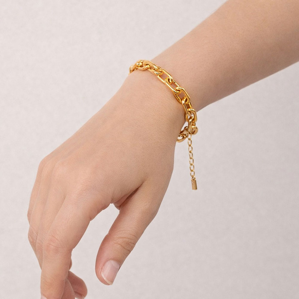 Κομψό ρυθμιζόμενο βραχιόλι αλυσίδα από ανοξείδωτο ατσάλι σε χρυσή απόχρωση. Διαθέτει σταθερό κούμπωμα με προέκταση για τέλεια εφαρμογή σε κάθε καρπό. Minimal και διαχρονικό σχέδιο, ιδανικό για καθημερινή χρήση αλλά και για layering με άλλα βραχιόλια. Ανθεκτικό στο νερό και στη φθορά.
