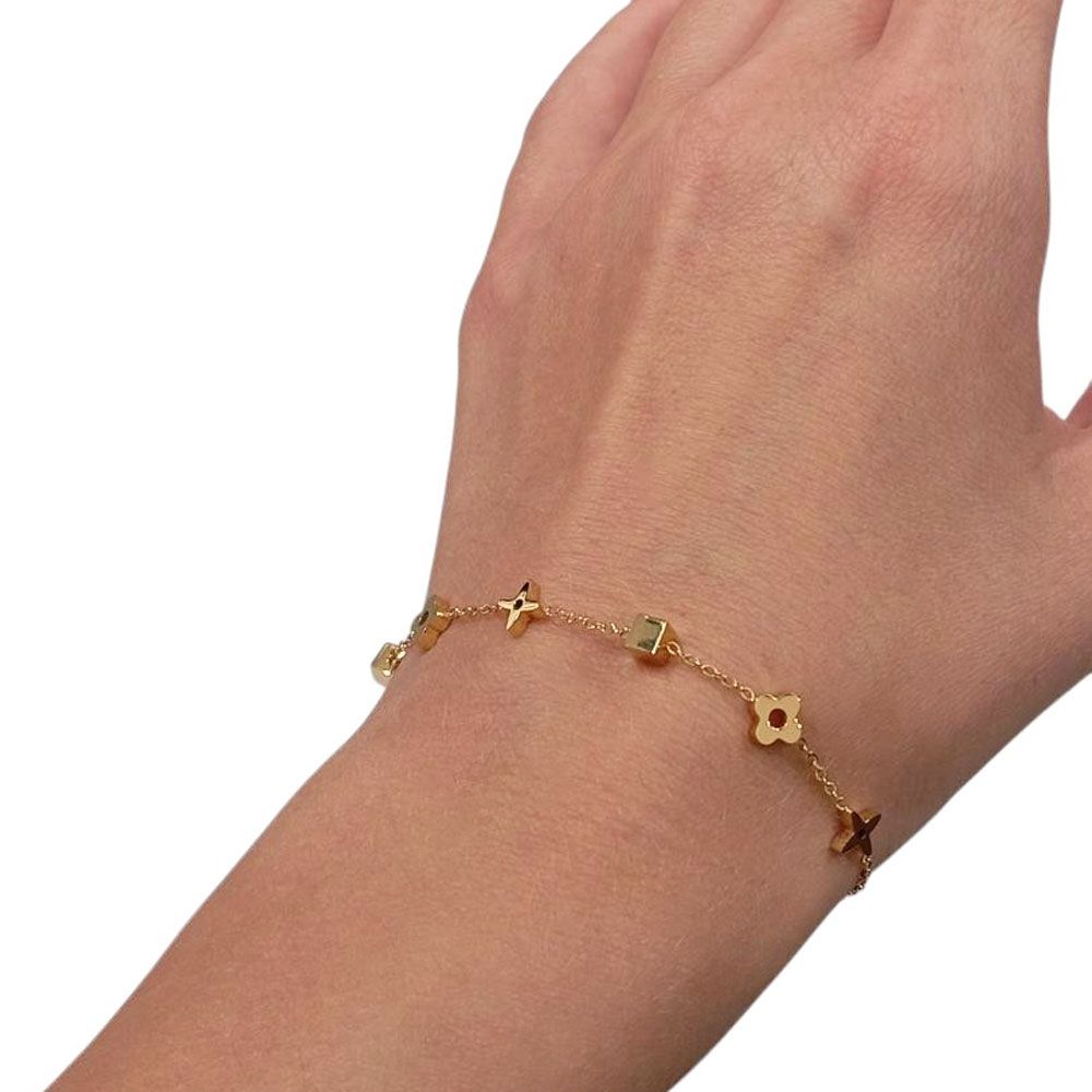 Στυλάτο βραχιόλι από ανοξείδωτο ατσάλι με διαδοχικά γεωμετρικά μοτίβα σε μοντέρνο σχεδιασμό. Διαθέτει αλυσίδα προέκτασης για ρύθμιση μεγέθους και κούμπωμα ασφαλείας για άνετη εφαρμογή. Ένα minimal αλλά εντυπωσιακό κόσμημα που συνδυάζεται εύκολα με κάθε εμφάνιση, από το πρωί έως το βράδυ.