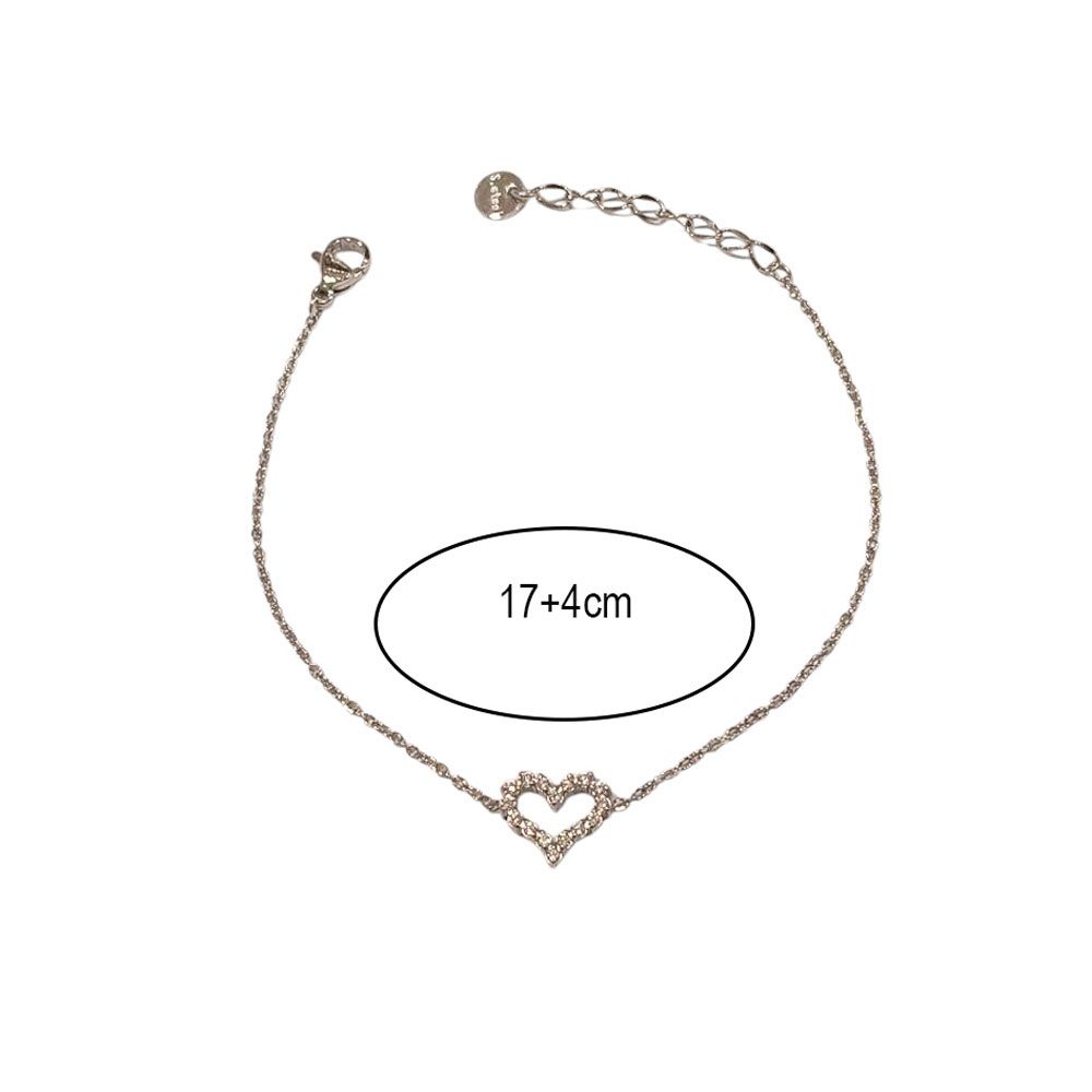 Ρομαντικό βραχιόλι από ανοξείδωτο ατσάλι με λεπτή αλυσίδα και κεντρικό μοτίφ καρδιά, διακοσμημένη με λαμπερά ζιρκόν που χαρίζουν κομψότητα και λάμψη. Διαθέτει αλυσίδα προέκτασης για προσαρμοζόμενο μήκος και ασφαλές κούμπωμα. Ένα διακριτικό και θηλυκό κόσμημα που ταιριάζει σε κάθε περίσταση, ιδανικό και ως δώρο αγάπης.