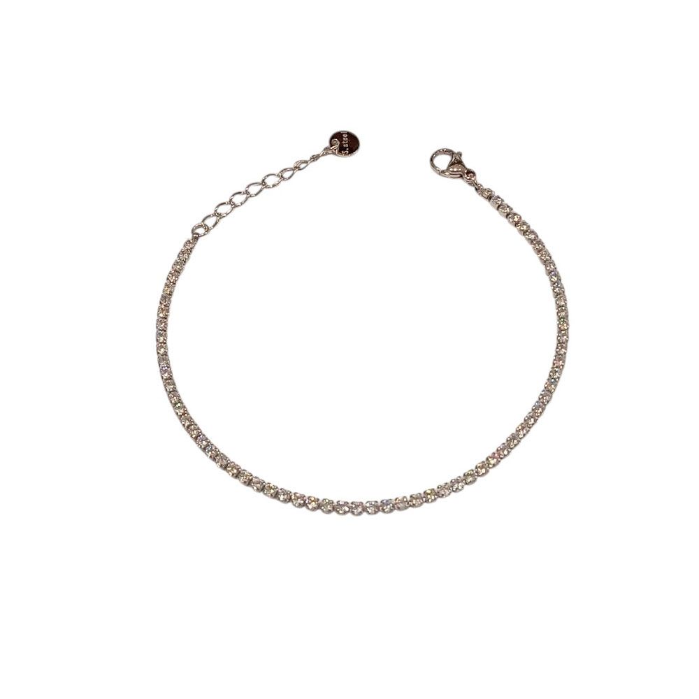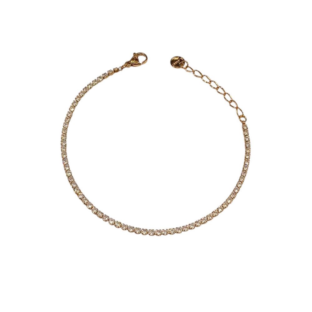 Κομψό βραχιόλι από ανοξείδωτο ατσάλι, διακοσμημένο με λαμπερά στρας σε όλο το μήκος του. Ένα διαχρονικό κόσμημα που χαρίζει λάμψη και φινέτσα σε κάθε εμφάνιση. Ιδανικό για να φορεθεί μόνο του ή σε συνδυασμό με άλλα βραχιόλια, για καθημερινό αλλά και βραδινό στυλ. Διατίθεται σε χρυσό και ασημί χρώμα.
