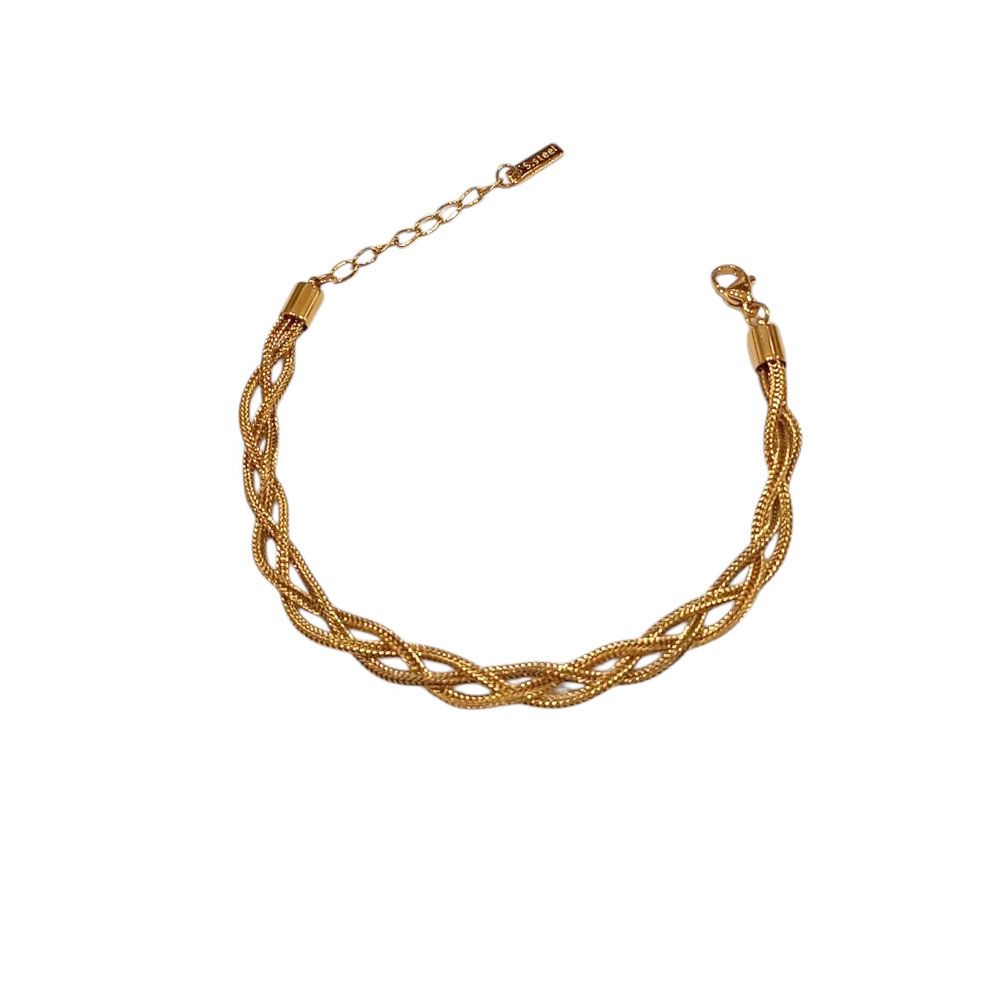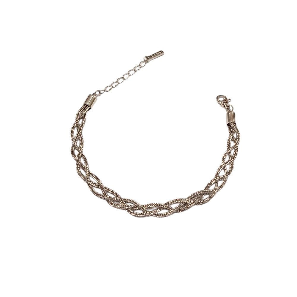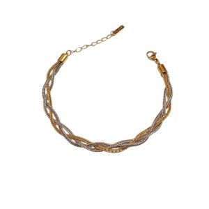 Κομψό βραχιόλι από ανοξείδωτο ατσάλι με πλεγμένο σχέδιο που χαρίζει διακριτική λάμψη και στυλ. Ένα μοντέρνο και διαχρονικό αξεσουάρ που ταιριάζει ιδανικά τόσο σε καθημερινές όσο και σε πιο επίσημες εμφανίσεις. Διατίθεται σε χρυσό, ασημί και δίχρωμο (χρυσό-ασημί) χρώμα.