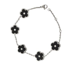 Βραχιόλι Απο Ανοξείδωτο Ατσάλι Τετράφυλλα Τριφύλλια Με Στρας – Ασημί Λευκό