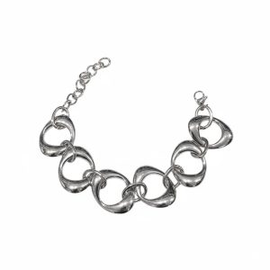 Εντυπωσιακό ασημί βραχιόλι με μεγάλους καμπυλωτούς κρίκους, που δημιουργούν ένα κομψό και μοντέρνο αποτέλεσμα. Ο bold σχεδιασμός του το κάνει ιδανικό τόσο για την καθημερινότητα όσο και για πιο βραδινές εμφανίσεις. Ελαφρύ, άνετο και ανθεκτικό, προσθέτει μια elegant πινελιά σε κάθε look. Διαθέτει ρυθμιζόμενο μήκος 15+5cm για τέλεια εφαρμογή.