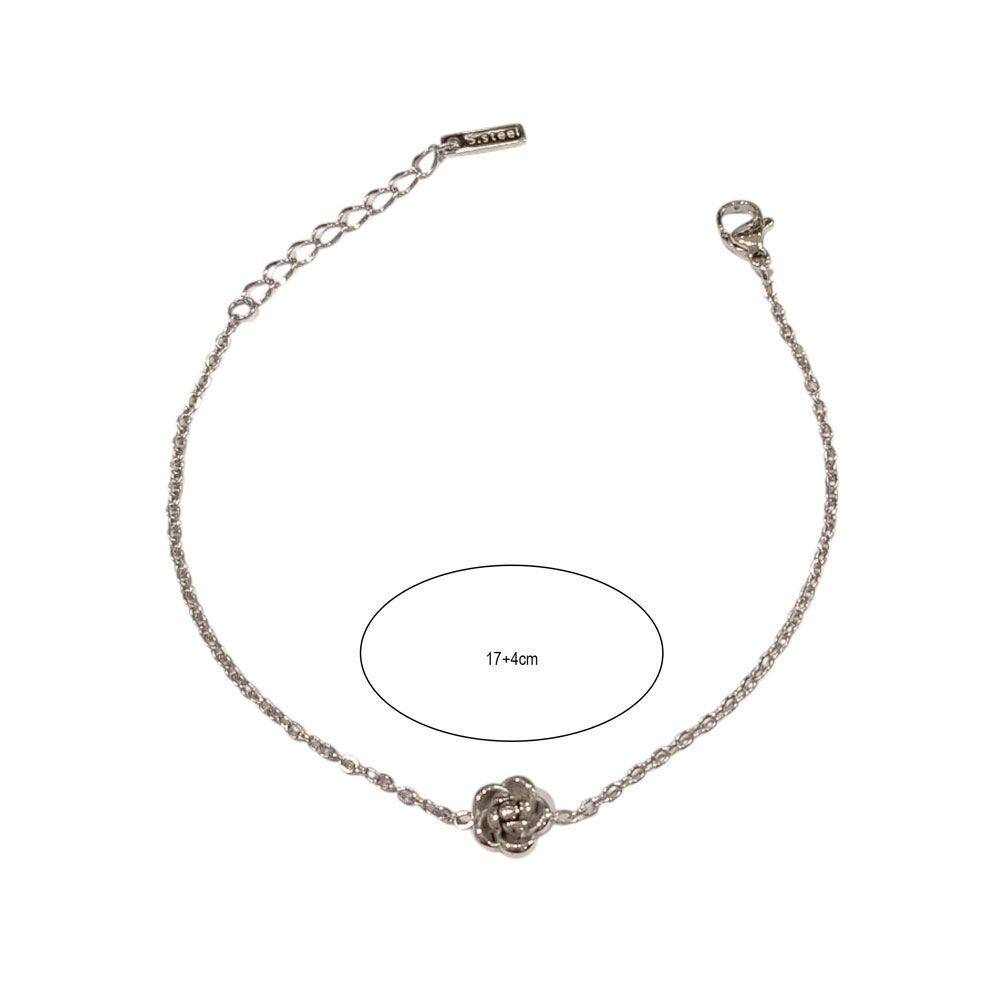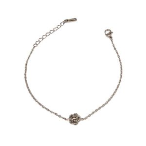 Απλό και ρομαντικό βραχιόλι με κεντρικό στοιχείο ένα κομψό μεταλλικό τριαντάφυλλο. Ιδανικό για καθημερινή χρήση αλλά και για πιο ιδιαίτερες εμφανίσεις. Κατασκευασμένο από ανοξείδωτο ατσάλι που δεν μαυρίζει, σε ασημί απόχρωση με λεπτή αλυσίδα.