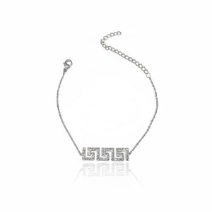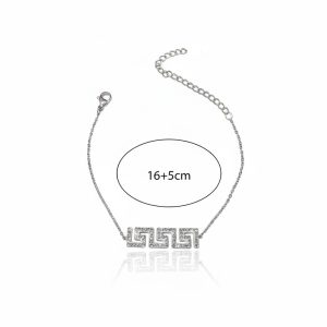 Κομψό βραχιόλι από ανοξείδωτο ατσάλι σε ασημί απόχρωση, διακοσμημένο με το διαχρονικό μοτίβο μαίανδρου και λαμπερά στρας που χαρίζουν διακριτική λάμψη. Η λεπτή αλυσίδα και το ρυθμιζόμενο μήκος 16+5 cm προσφέρουν άνετη εφαρμογή και ευκολία προσαρμογής, καθιστώντας το ιδανικό για καθημερινή χρήση αλλά και για πιο προσεγμένες εμφανίσεις, με ανθεκτική και υποαλλεργική κατασκευή.
