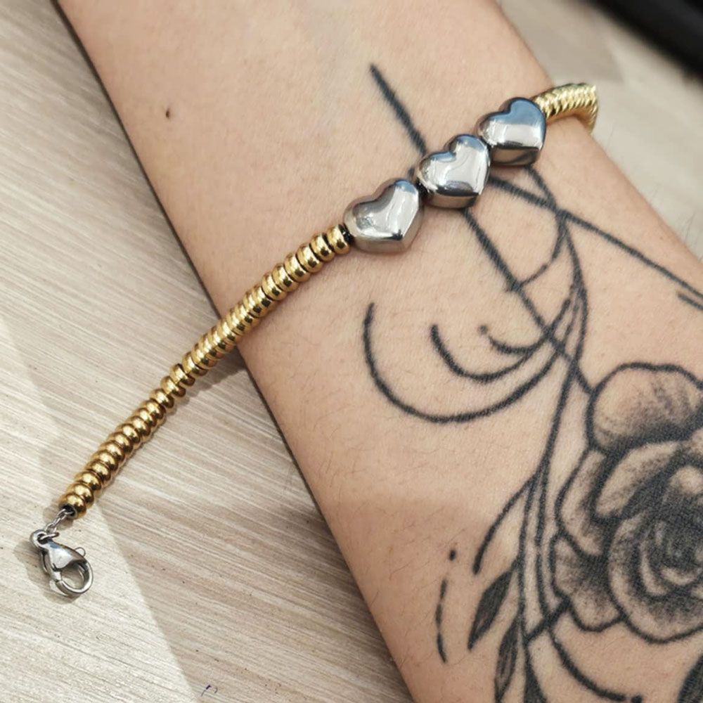 • Ατσάλινο Βράχιολι Με Καρδιές Χρυσό ΑσημίΑ11003