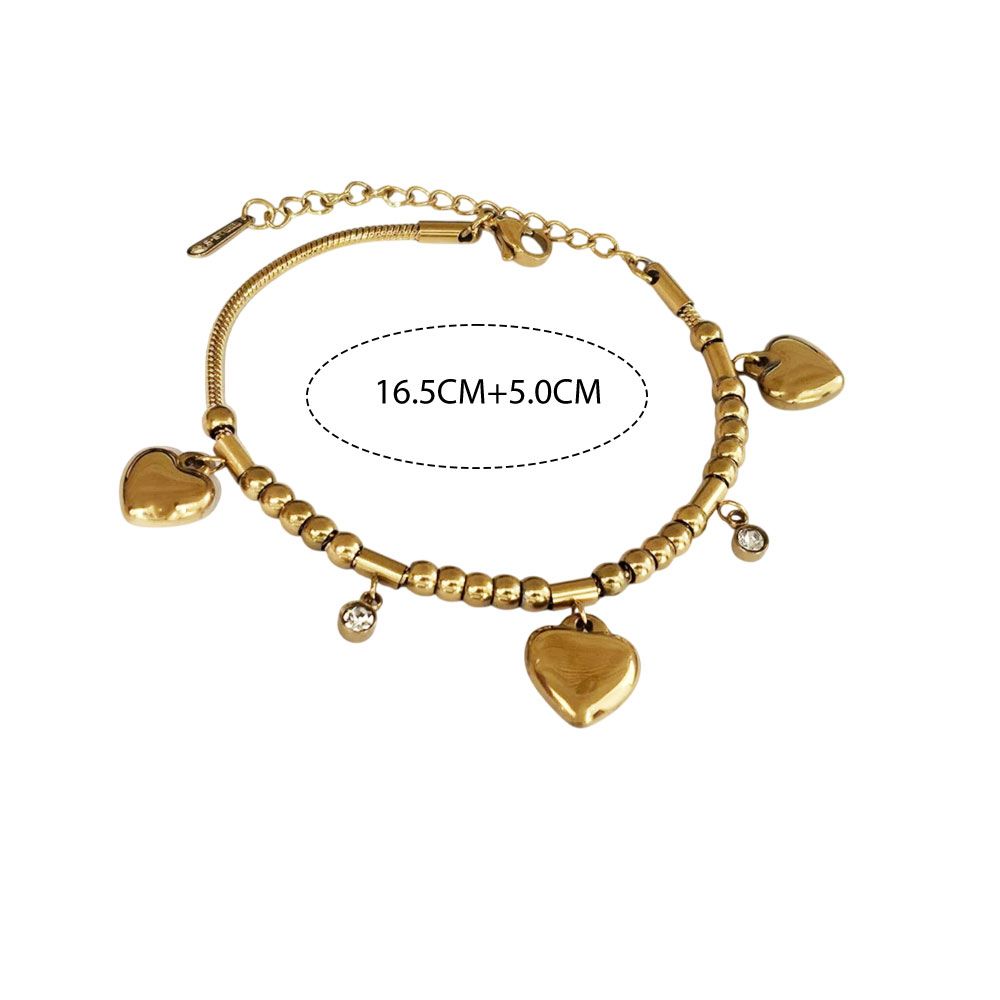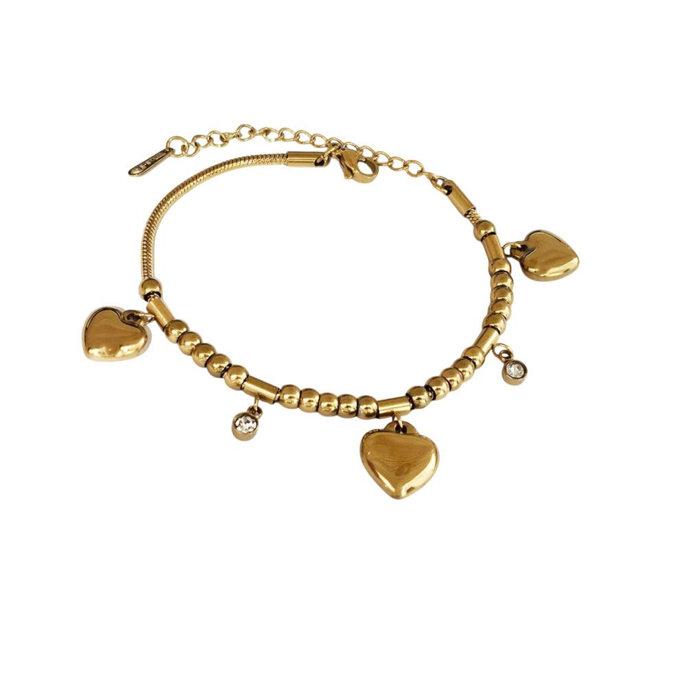 Ατσάλινο Βραχιόλι Με Κρεμαστές Καρδιές Και Πέτρες Ζιργκόν – Χρυσό
