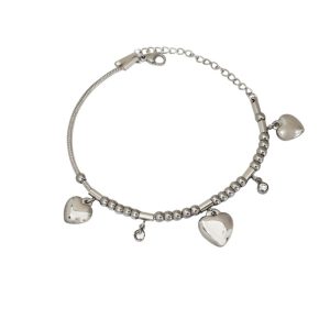 Ατσάλινο Βραχιόλι Με Κρεμαστές Καρδιές Και Πέτρες Ζιργκόν - ΧρυσόA33060