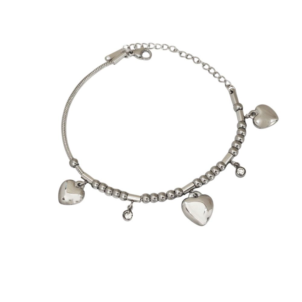 • Ατσάλινο Βραχιόλι Με Κρεμαστές Καρδιές Και Πέτρες Ζιργκόν - ΧρυσόA33060
