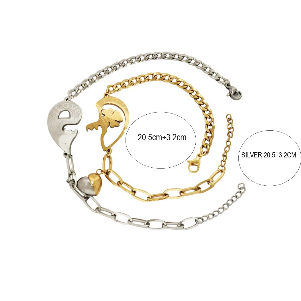 Κόσμημα-Βραχιόλι Για Ζευγάρι Απο Ατσάλι – Jewelry-Bracelet For Couple Made Of Steel Μήκος Αλυσίδας Ασημί 20.5cm+3.2cm Κούμπωμα Μήκος Αλυσίδας Χρυσό 19.2cm+3.2cm