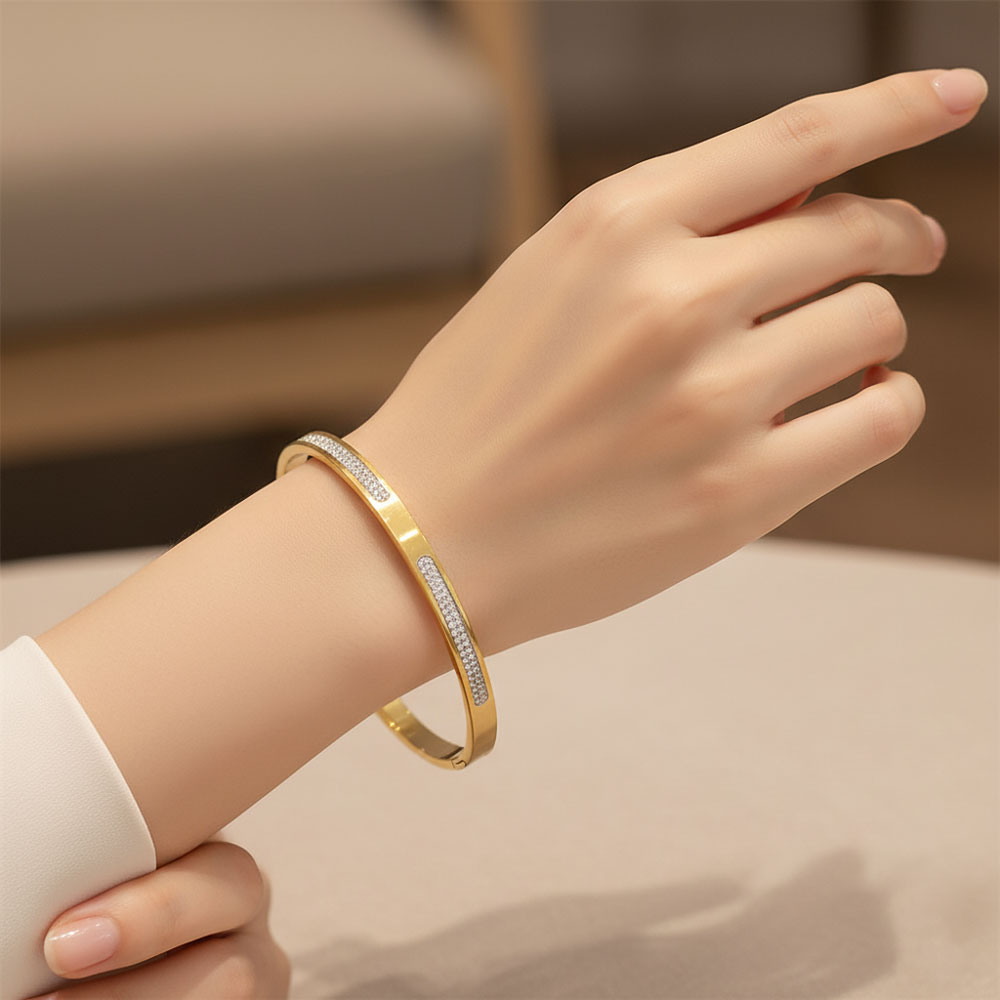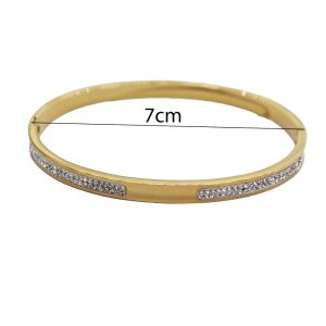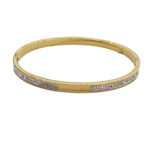 Βραχιόλι Ατσάλι με Διπλή Γραμμή Στρας XL 7CM – Χρυσό
