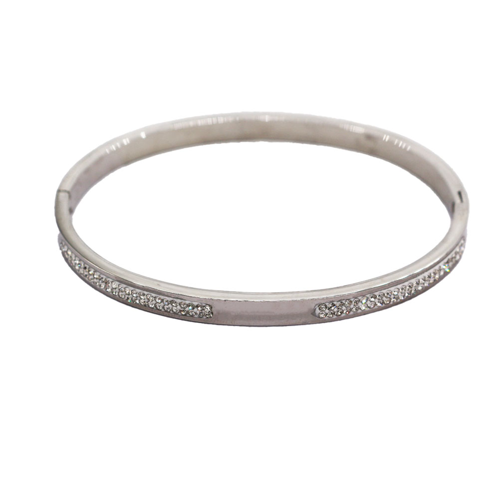 Βραχιόλι Ατσάλι με Διπλή Γραμμή Στρας XL 7CM - Ασημί6436B