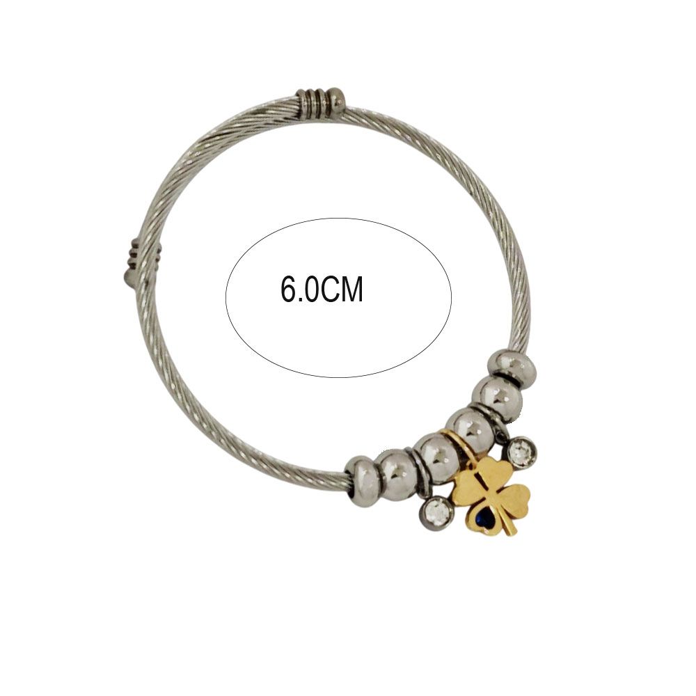 Γυναικείο Βραχιόλι χειροπέδα, από ανοξείδωτο ατσάλι και τετράφυλλο τριφύλλι με στρας