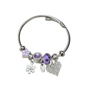 Χειροπέδα Ατσάλινη Με Χάνδρες Και Καρδιά – Ασημί Μοβ