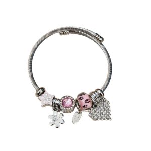 • Χειροπέδα Ατσάλινη Με Χάνδρες Και Καρδιά - Ασημί Ροζ2024-6-4