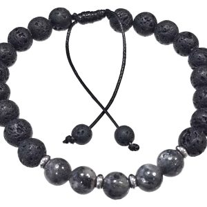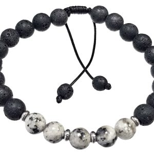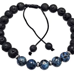 Αντρικό Βραχιόλι Πέτρα μακραμέ 8mm, με ημιπολύτιμες πέτρες και στοιχεία από ατσάλι