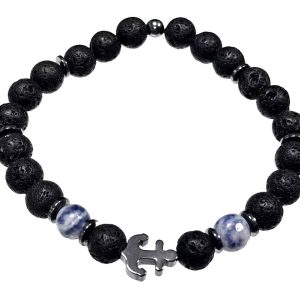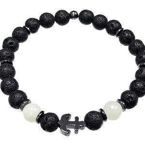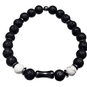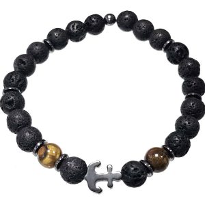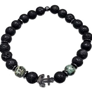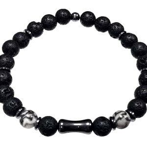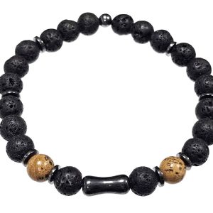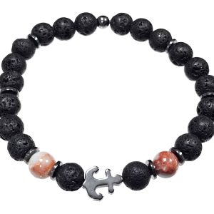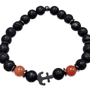 Αντρικό Βραχιόλι Πέτρα ελαστικό, με λάβα και στοιχεία από αιματίτη