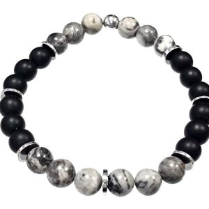 Αντρικό Βραχιόλι Πέτρα ελαστικό 8mm, με ημιπολύτιμες πέτρες και στοιχεία από αιματίτη