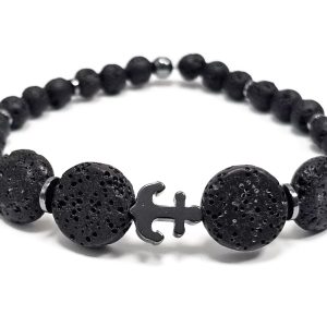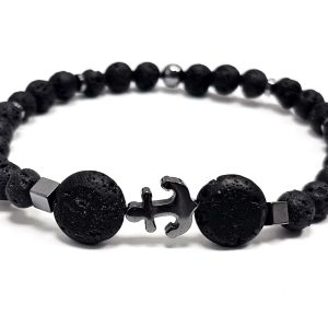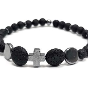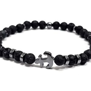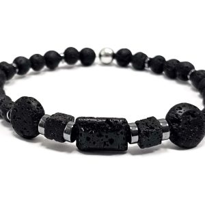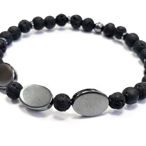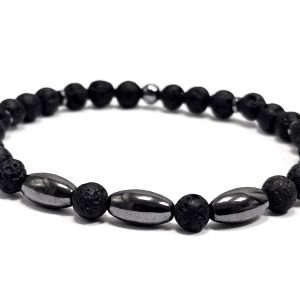 Αντρικό Βραχιόλι Πέτρα ελαστικό, με λάβα και στοιχεία από αιματίτη