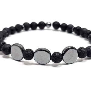 Αντρικό Βραχιόλι Πέτρα ελαστικό, με λάβα και στοιχεία από αιματίτη