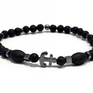 Αντρικό Βραχιόλι Πέτρα λάβα, ελαστικό 6mm
