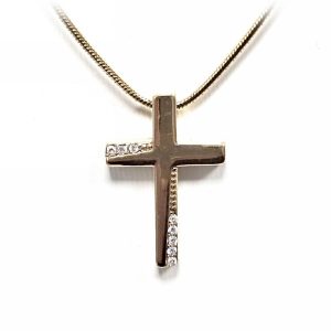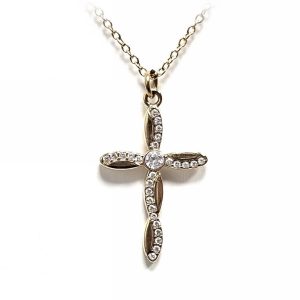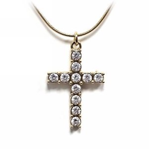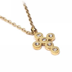 Κολιέ Ατσάλι 316L, αλυσίδα με σταυρό και στρας σε χρώμα Χρυσαφί