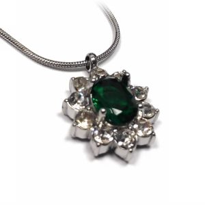 Κολιέ Ατσάλι 316L, αλυσίδα με στρας και κρυσταλλάκι σε χρώμα Ασημί