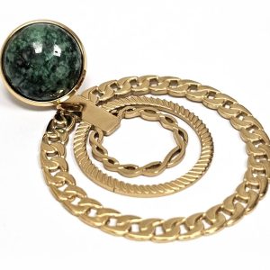 Σκουλαρίκια Πέτρα Ατσάλι 316L, με μαλαχίτης σε χρώμα Χρυσαφί