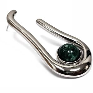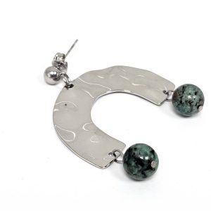 Σκουλαρίκια Πέτρα 316L, με μαλαχίτη σε χρώμα Ασημί