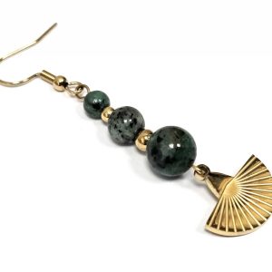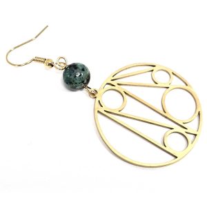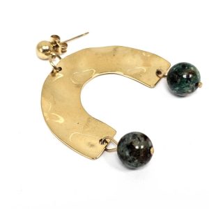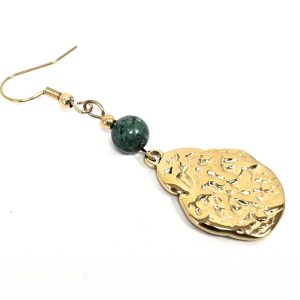 Σκουλαρίκια Πέτρα με μαλαχίτη σε χρώμα Χρυσαφί